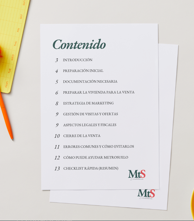 Por eso en MetroSuelo hemos reunido en una guía práctica todo lo que debes preparar antes, durante y después de poner tu vivienda en el mercado: